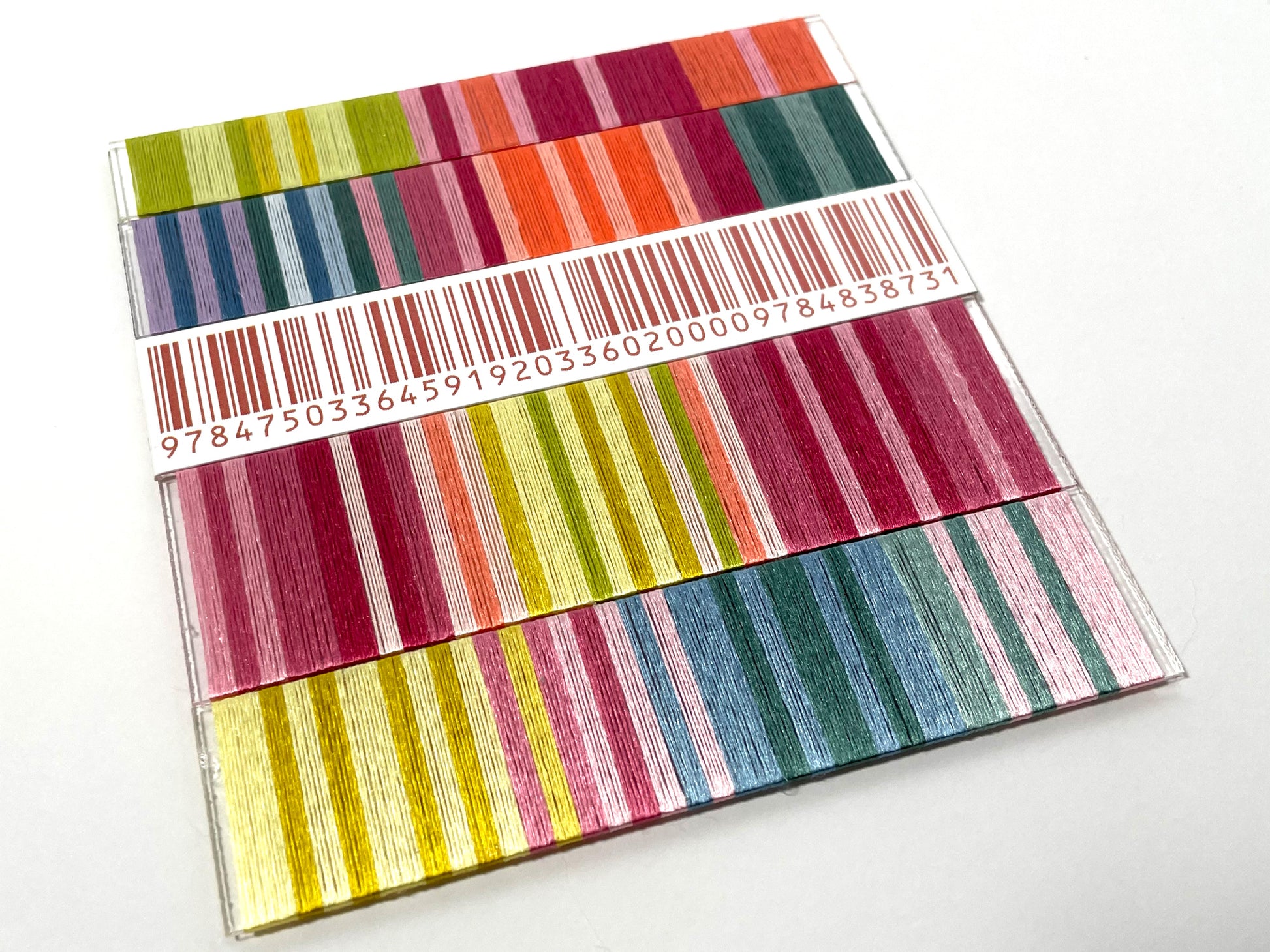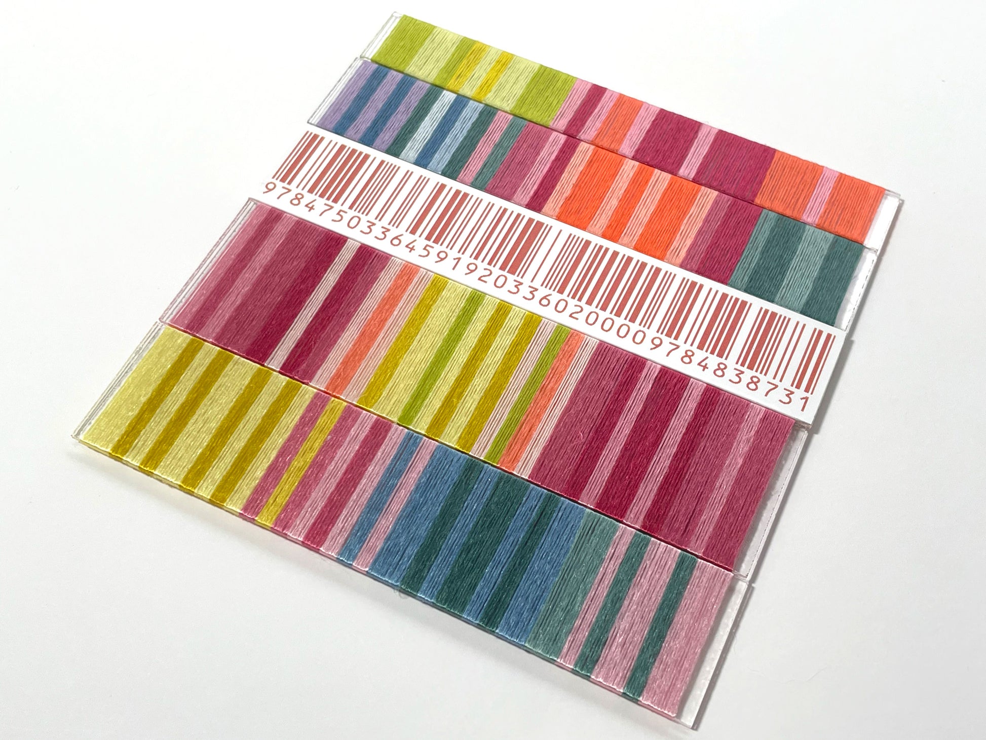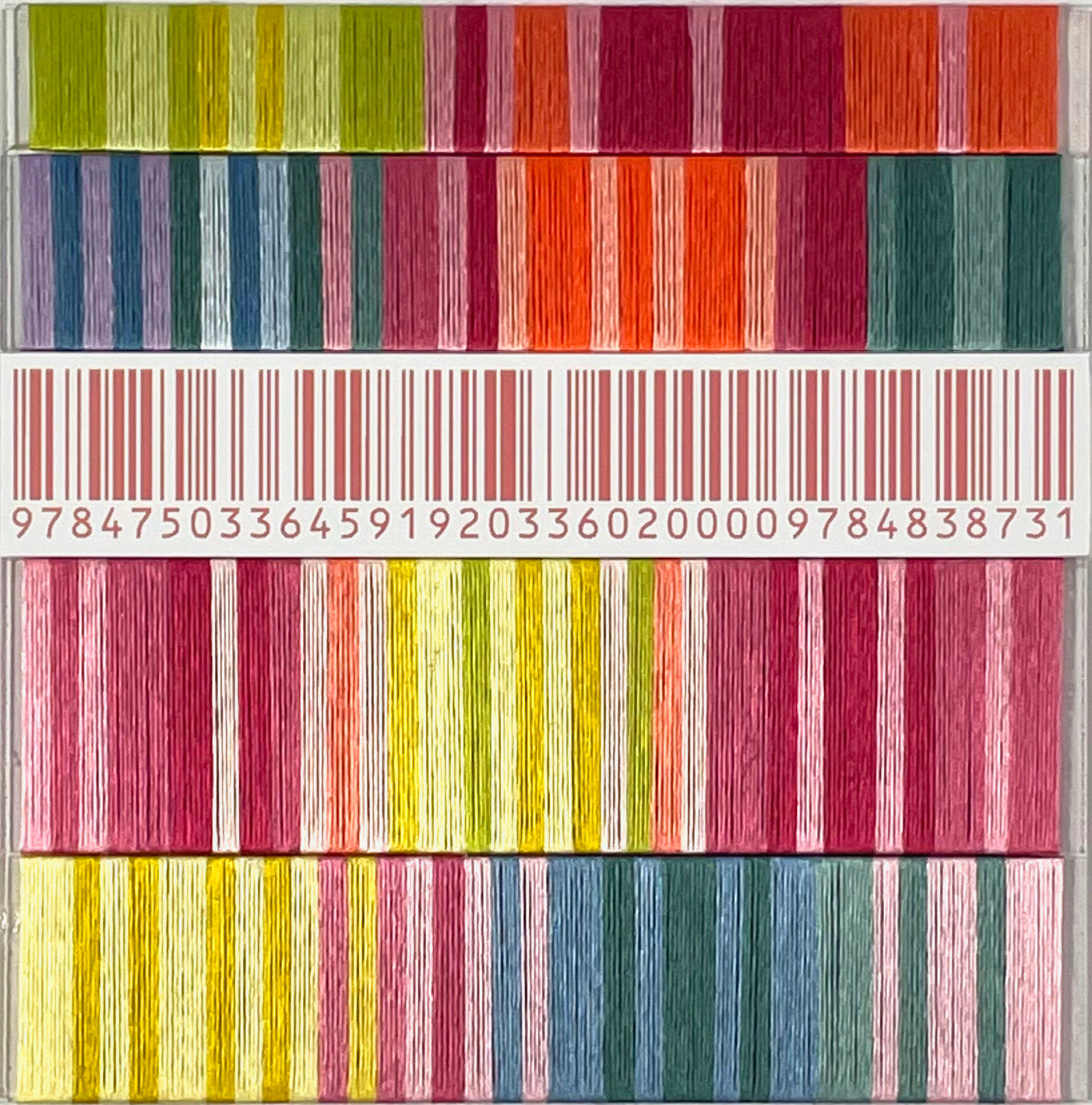 Bar code part represents something artificial and men themselves, multi colour stripe parts represent the world around us.