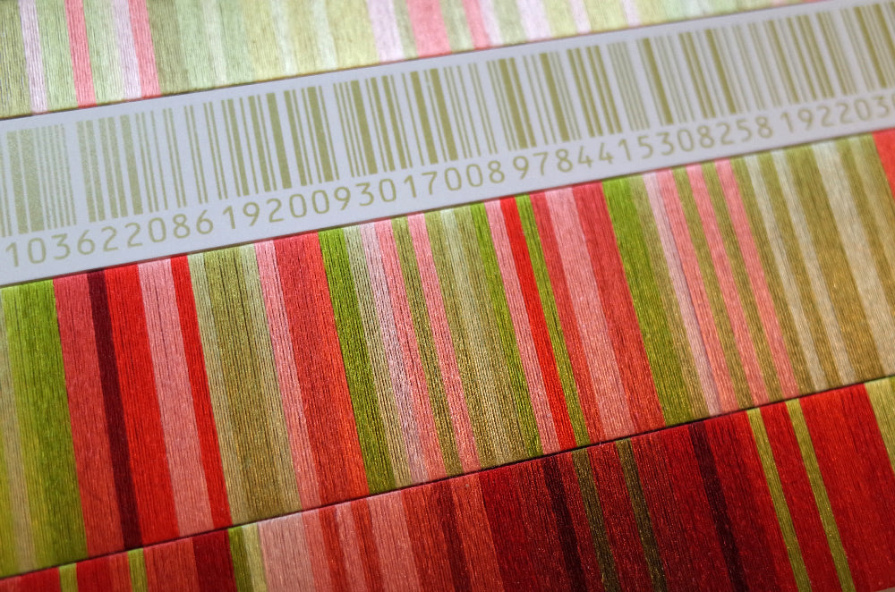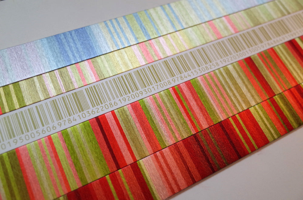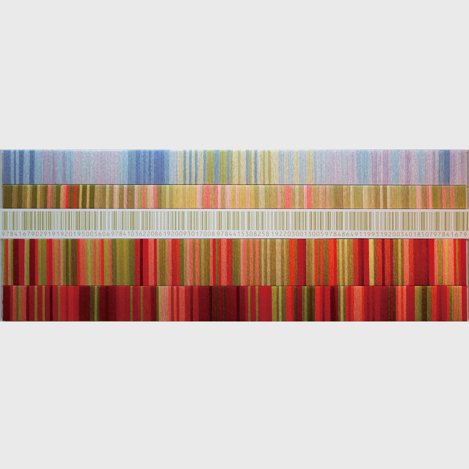 Bar code part represents something artificial and men themselves, multi colour stripe parts represent the world around us.