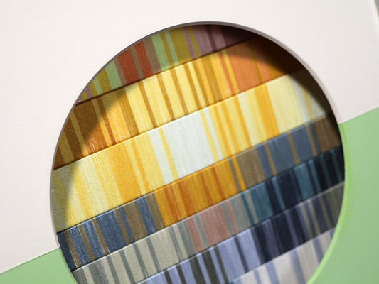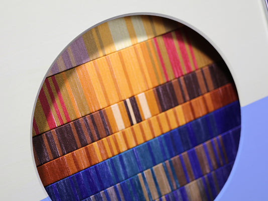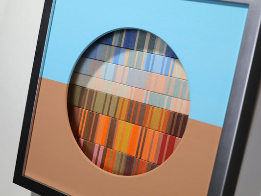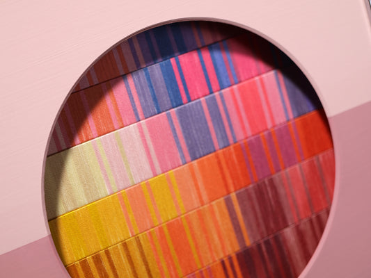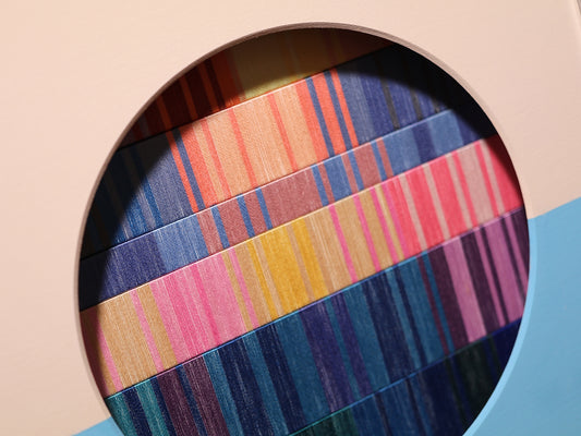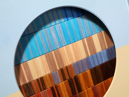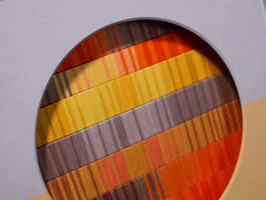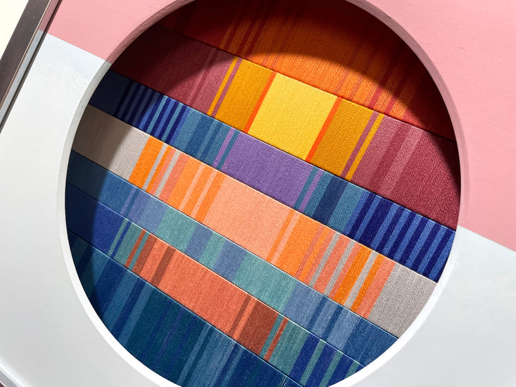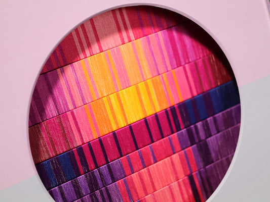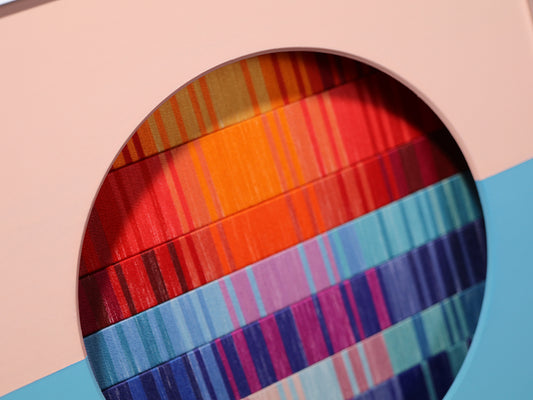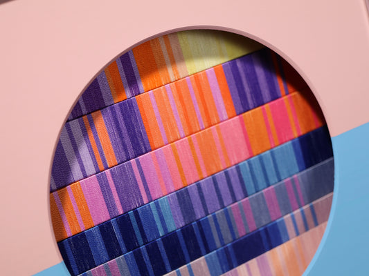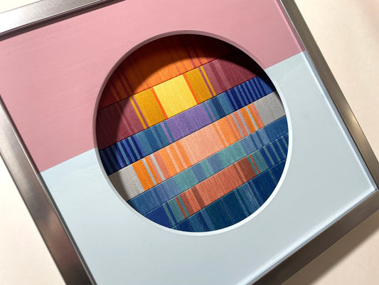 この先の分からない不安定な世界で、アートなどというものには何の力も無いような気がすることがあります。それでも、作品を見た時にぱっと明るい気分になってほしいという希望を込めて、今回の作品は「朝焼け」をイメージして作りました。