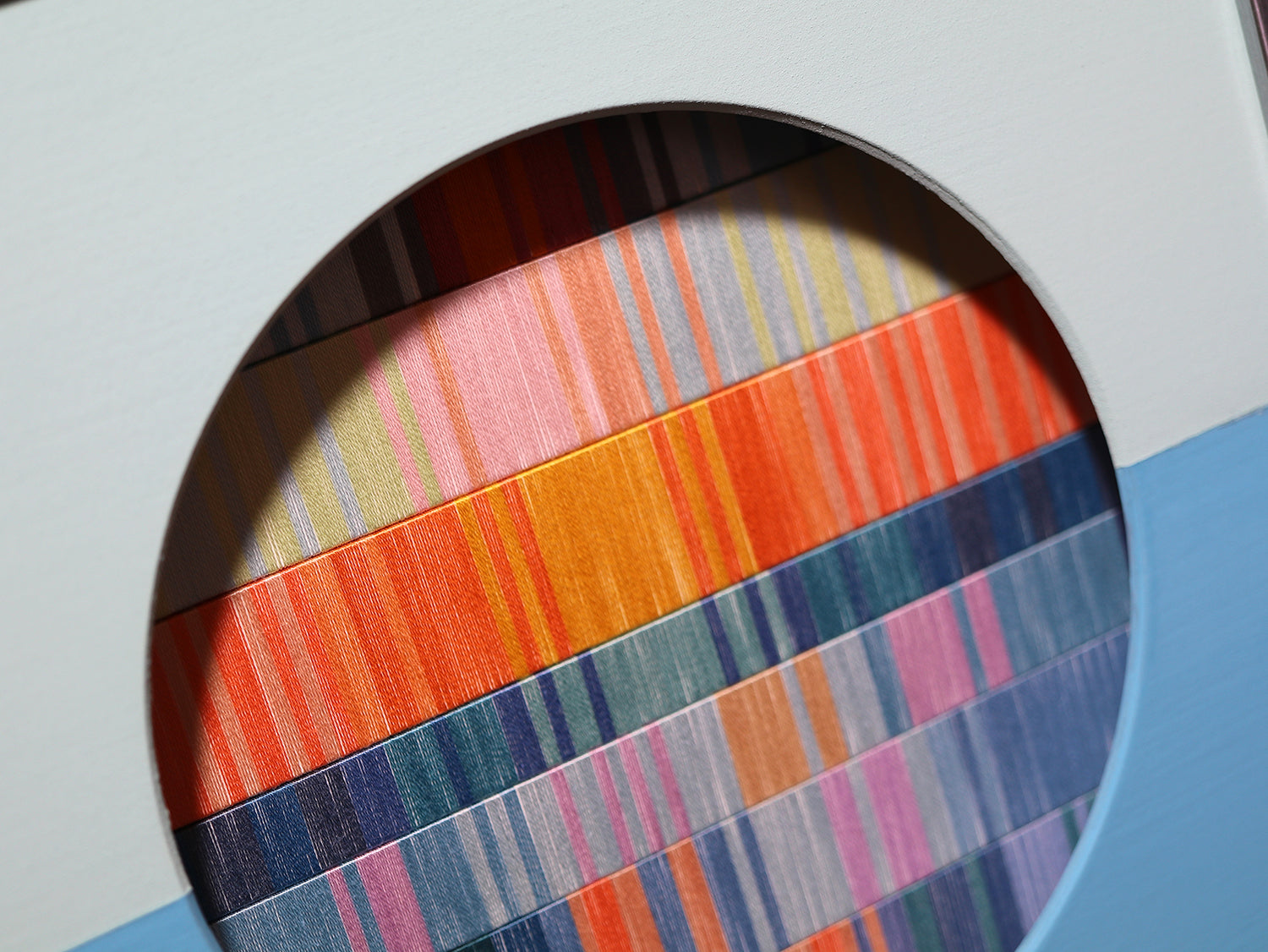 혼합 매체 - 자수 실 (면), 아크릴 보드, 매트 액자지, 아크릴 페인트