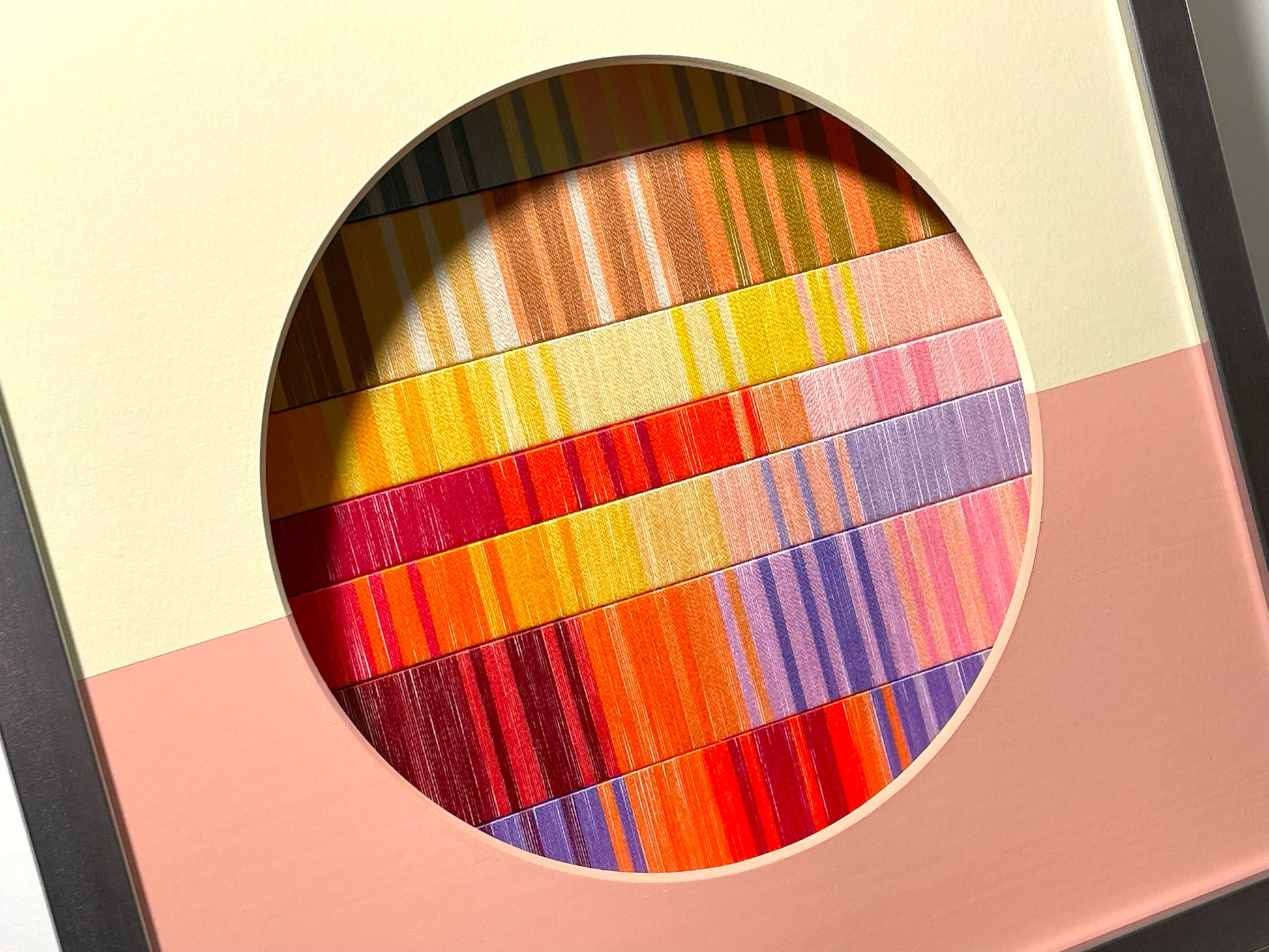 혼합 매체 - 자수 실 (면), 아크릴 보드, 매트 액자지, 아크릴 페인트