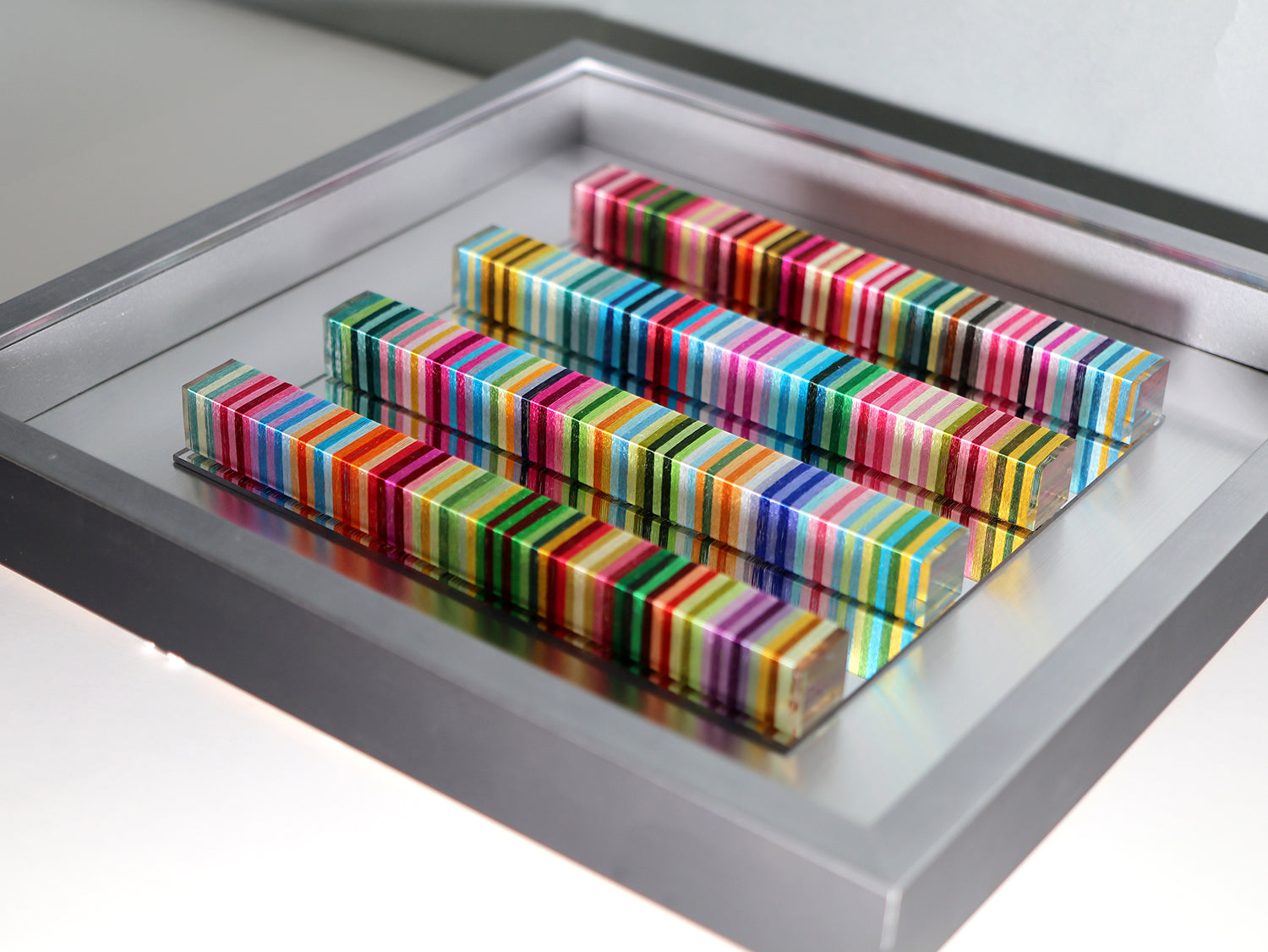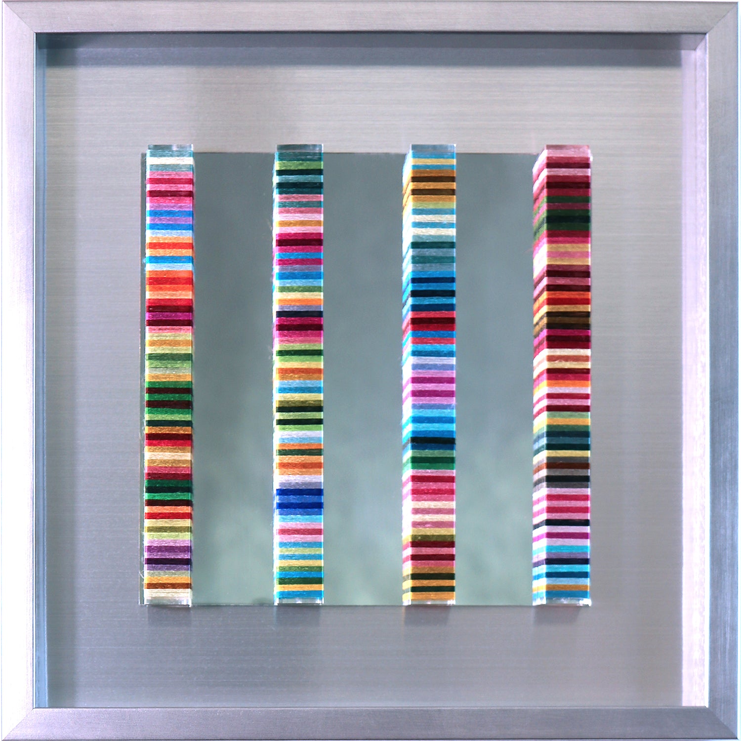 ミクストメディア―刺繍糸(シルク)、アクリルミラー板、アクリル棒、両面テープ