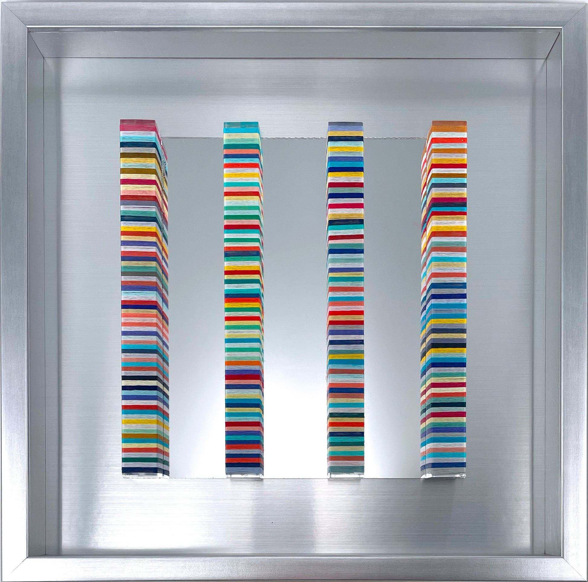 ミクストメディア―刺繍糸(シルク)、アクリルミラー板、アクリル棒、両面テープ